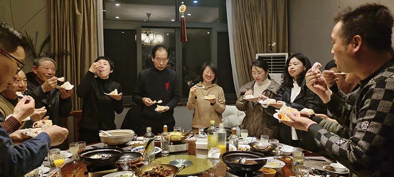 這是公司首屆員工生日聚餐,公司總經理及員工所在部門負責人也一起參加了此次生日聚餐。生日宴會上給每位生日員工準備了生日蛋糕、長壽面、荷包蛋和100元紅包。