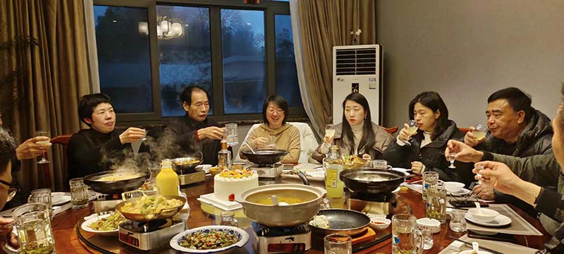 2024年2月28日公司在山莊為2月份生日的員工過集體生日,這次2月份過生日的員工共7人。